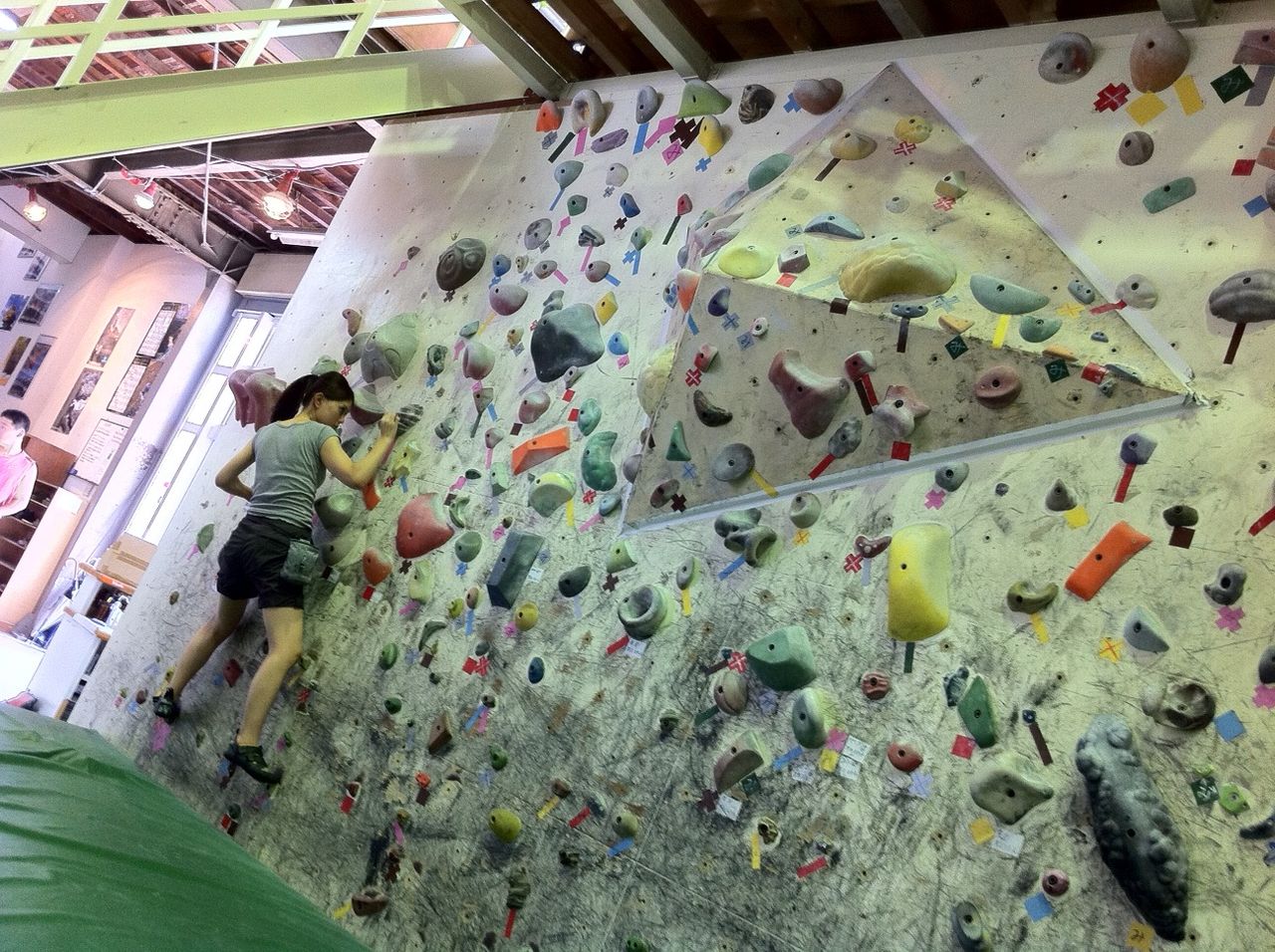 広々としたボルダリングジムは満員状態に!