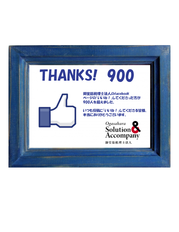 御堂筋税理士法人のfacebookページの「いいね!」してくださった方が900人を超えました!!